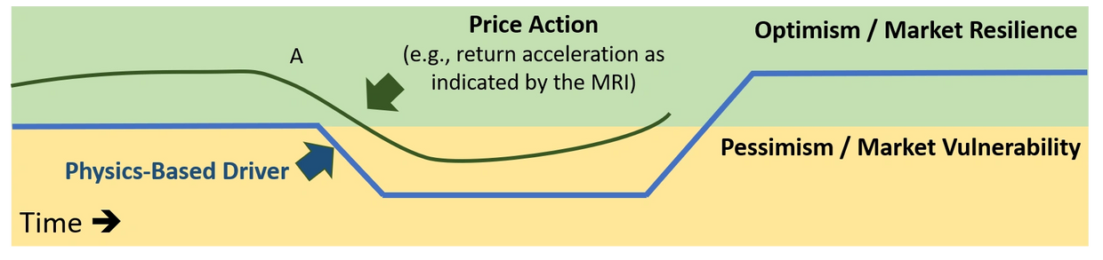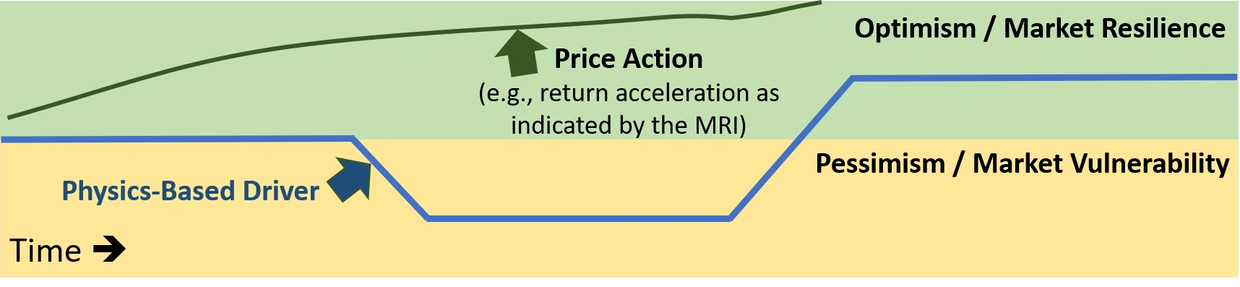 The Market Resilience Indexes reflect broad investor sentiment, reflecting views on economic (e.g., economic growth) and market conditions (e.g., stock valuations) plus the natural forces predicted by the physics-based drivers. The MRI series is derived from index price changes, measuring return acceleration over periods ranging from weeks to quarters. These indexes help identify actual sentiment inflection points, providing signals for both short- and long-term asset allocation changes.